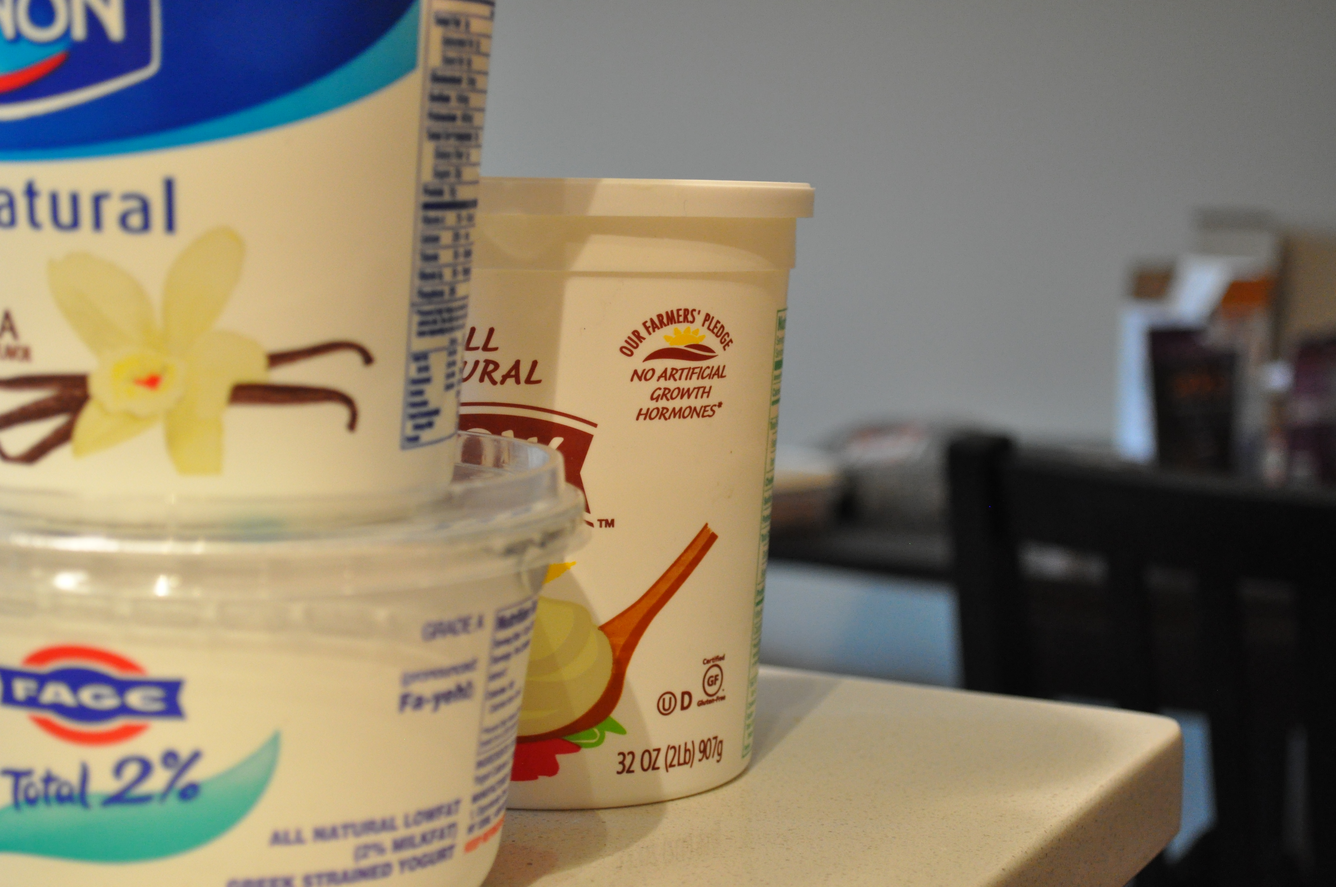 Yogurt.  I love everything about it.  Frozen, fresh, vanilla, plain, fruit on the bottom, soft serve, the kind that looks like ice cream, fat free, full fat, cream top (oh!  the cream top!), it’s all the best in my book.  So when there was a slight grocery shopping communication issue, and we ended up with four full size cartons of yogurt in our fridge, I was not upset.