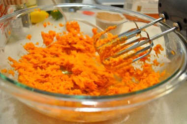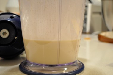 2. Blend all of the ingredients in a blender until smooth. Fill the muffin tins to the top with batter.