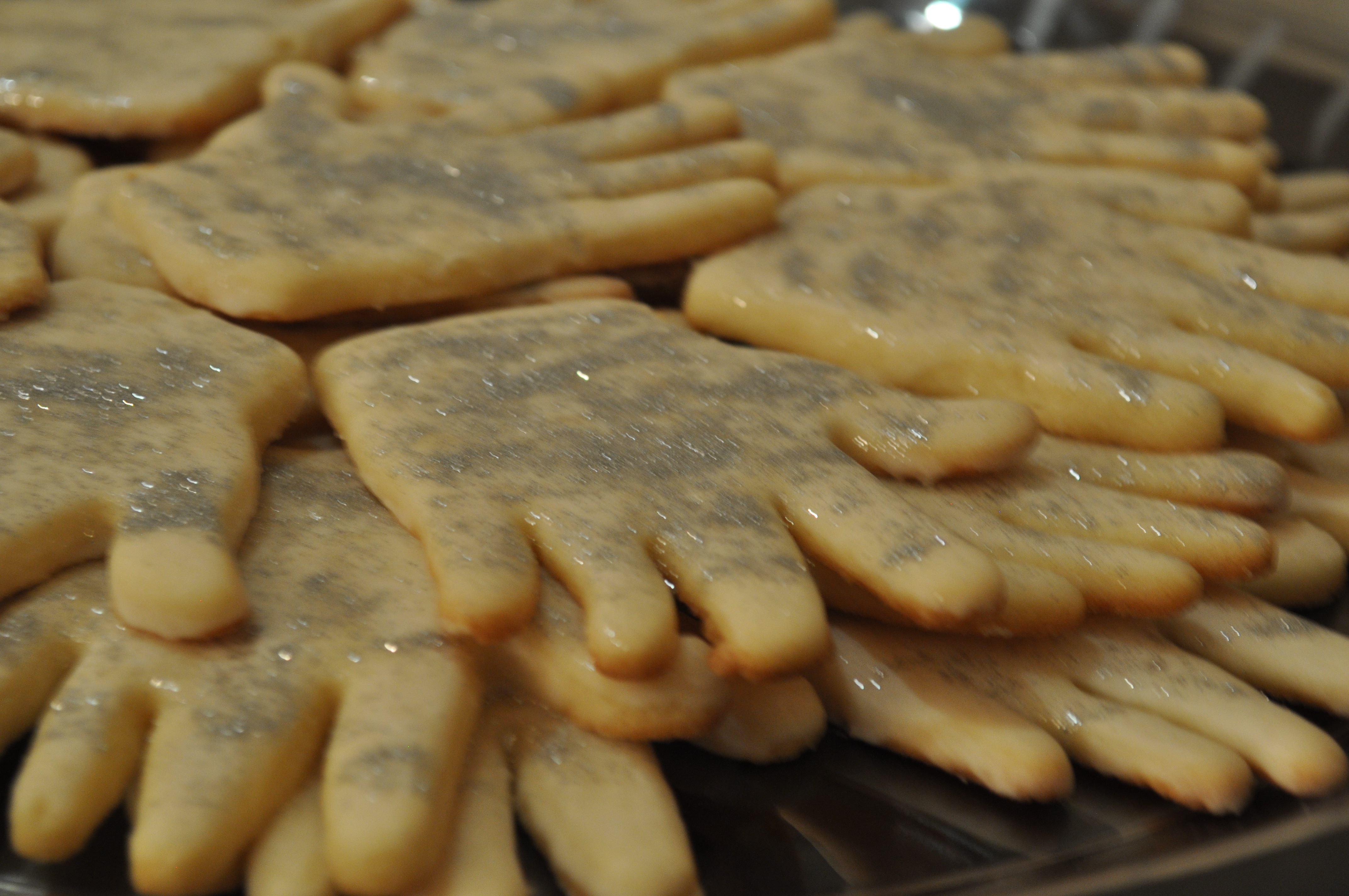 But there is much more to this story than this: we had a party for my sister’s birthday. A Michael Jackson themed party. Alas, there was no time to take beautiful photos to show just how scrumptious this cake was between the karaoke and the moonwalking! So you don’t even get to see the true tallness of this cake! I know, such a tease. But you will see the Thriller glove sugar cookies that I made. And I certainly hope that makes up for it.
