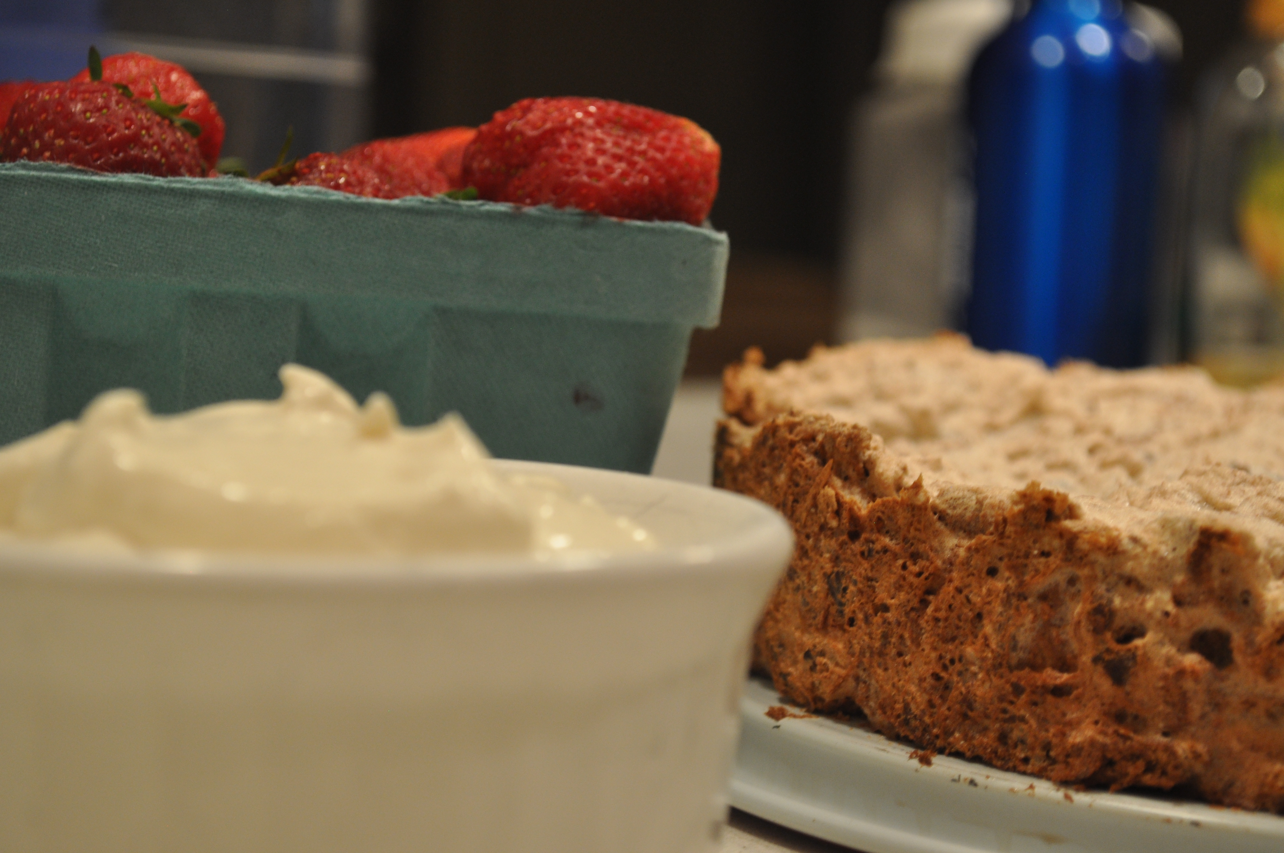 This cake is that same meringue cookie in grander form. It’s soft, marshmallowy and light in texture, with crunchy, toasty pecans and graham crackers spread throughout. All topped with a light cream cheese frosting, and first of the season strawberries. It’s basically screaming summer.