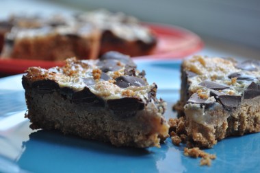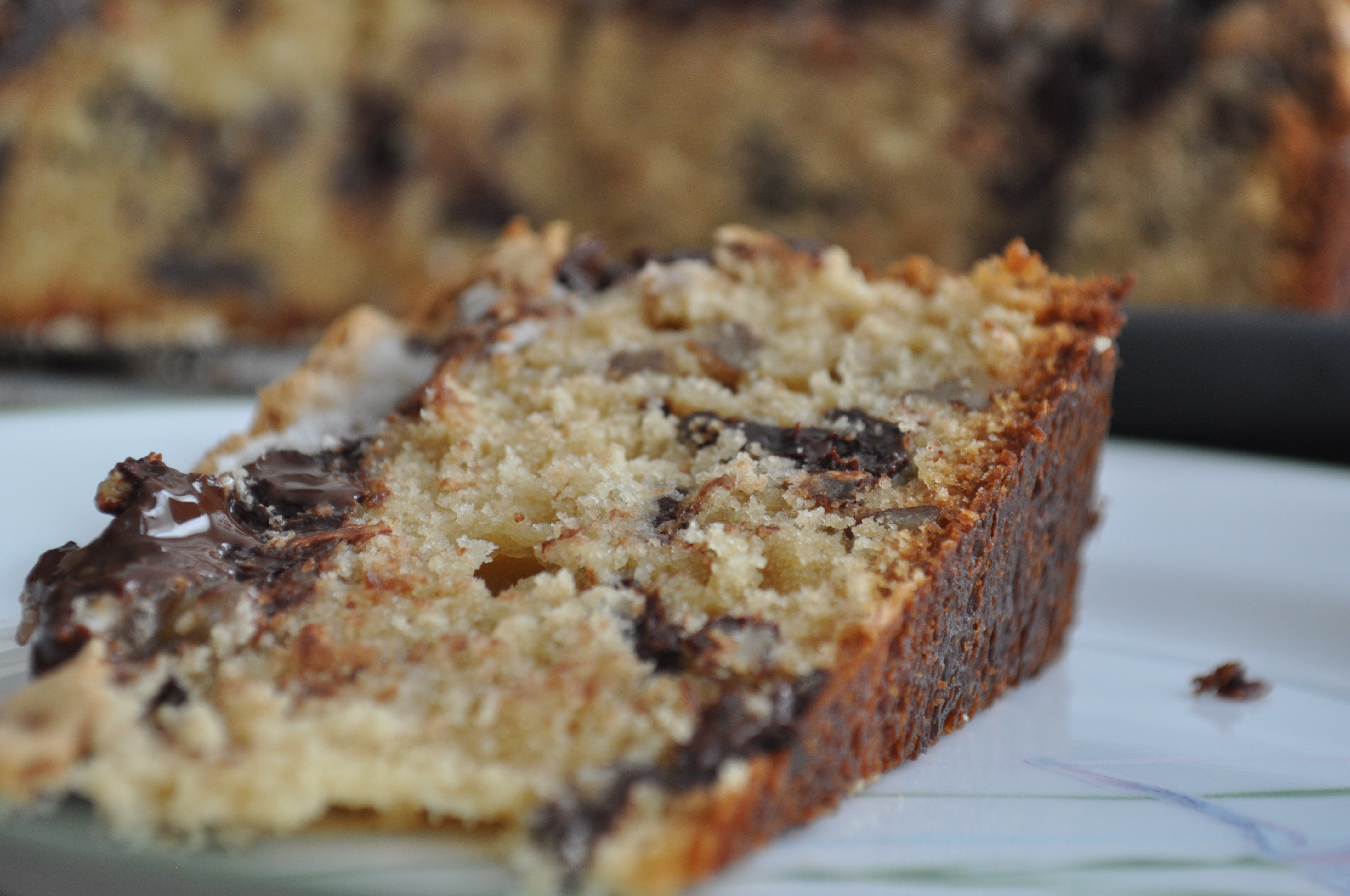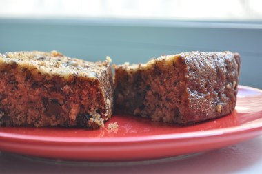 So, knowing all of this, I made this cake. A birthday cake at its best! A chocolate chip pecan pound cake-like bottom, with a fluffy, marshmallowy chocolate chip studded meringue top. It satisfied all requirements, and most of all, it satisfied my sister’s need for her birthday cake. I have already started researching for next year’s cake so I’m ready.