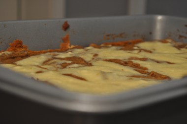 When I did finally realize that my favorite season was just passing me by, I decided to make these pumpkin bars. In fact, I was so excited to get my fall baking started more than a month late that when I reached for the spices, instead of the ginger, I used some garlic. Let’s just say that the situation wasn’t good. I clearly have lost my fall baking mojo.
