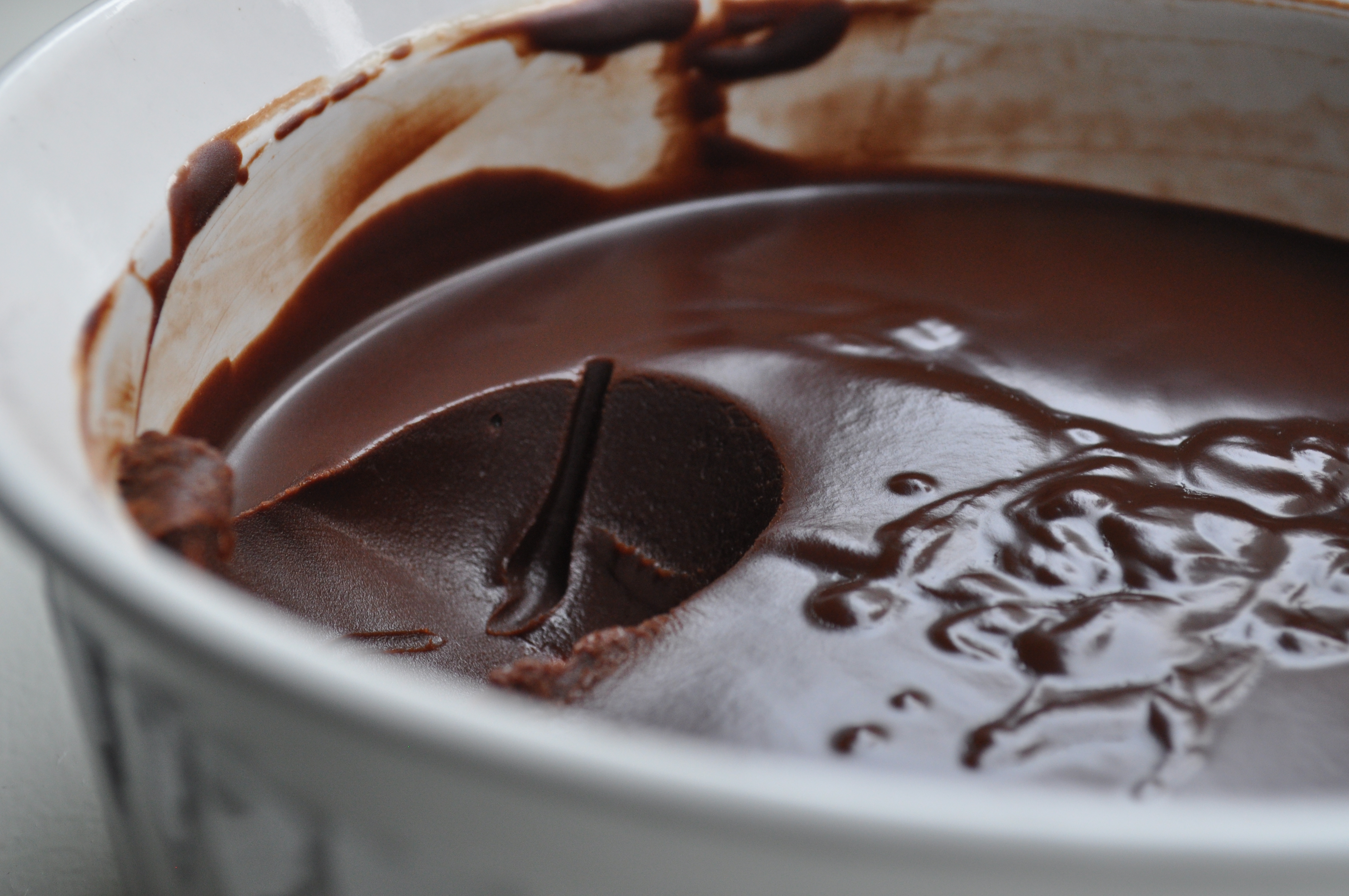 Remove the top pan of the double boiler, if using, and wipe it dry. Add the remaining 3 ounces of chocolate in 3 stages, stirring until it’s completely melted. This tempers the chocolate so it won’t have any streaks, and so the chocolate won’t melt when kept at room temperature.