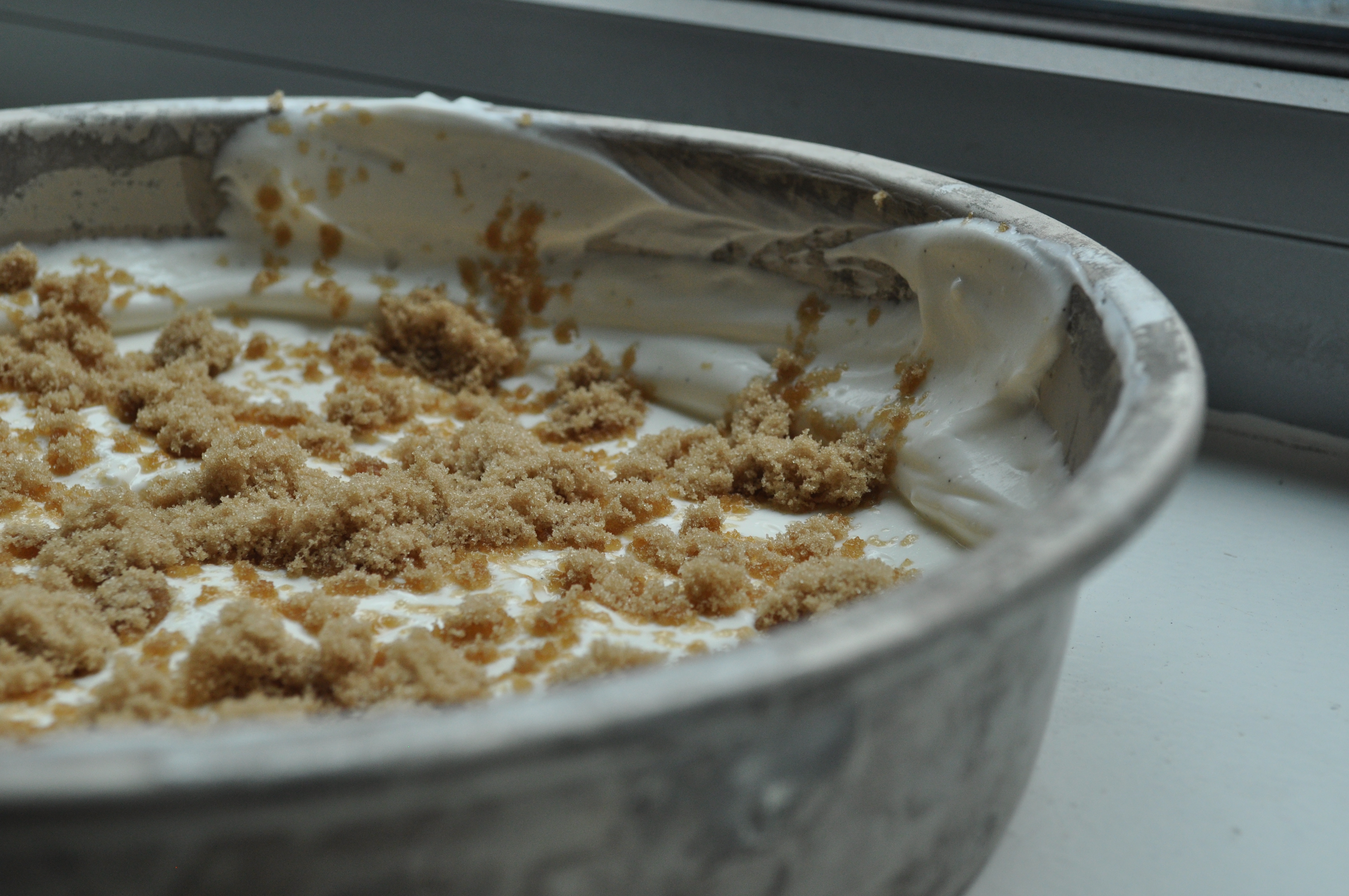 Make parfaits: without mixing in the brown sugar, spoon out the yogurt into cups. Layer with cooked apples and biscotti (or whatever you are using). Keep layering, using 1/2 of the yogurt, and 1/2 of the apples. Eat immediately.