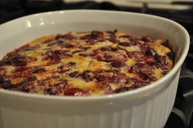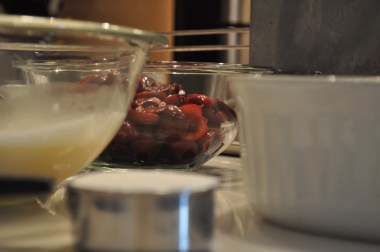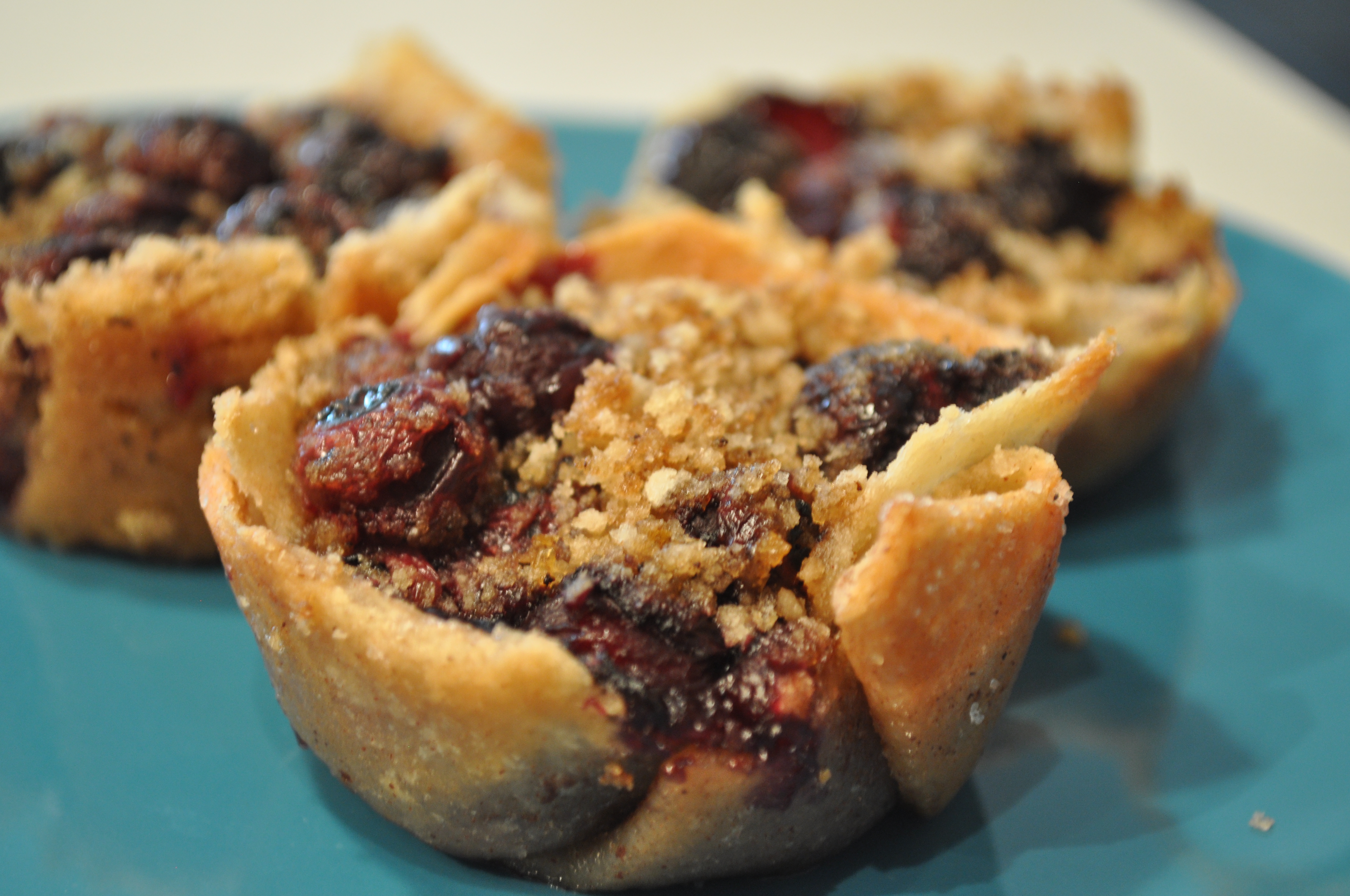 Whiz flour, 8 tbsp. butter, salt, and 1 tbsp. sugar in a food processor until it’s crumbly like cornmeal. Add the iced water and process until the dough forms into a ball. Take out of food processor and wrap in plastic wrap for about an hour.